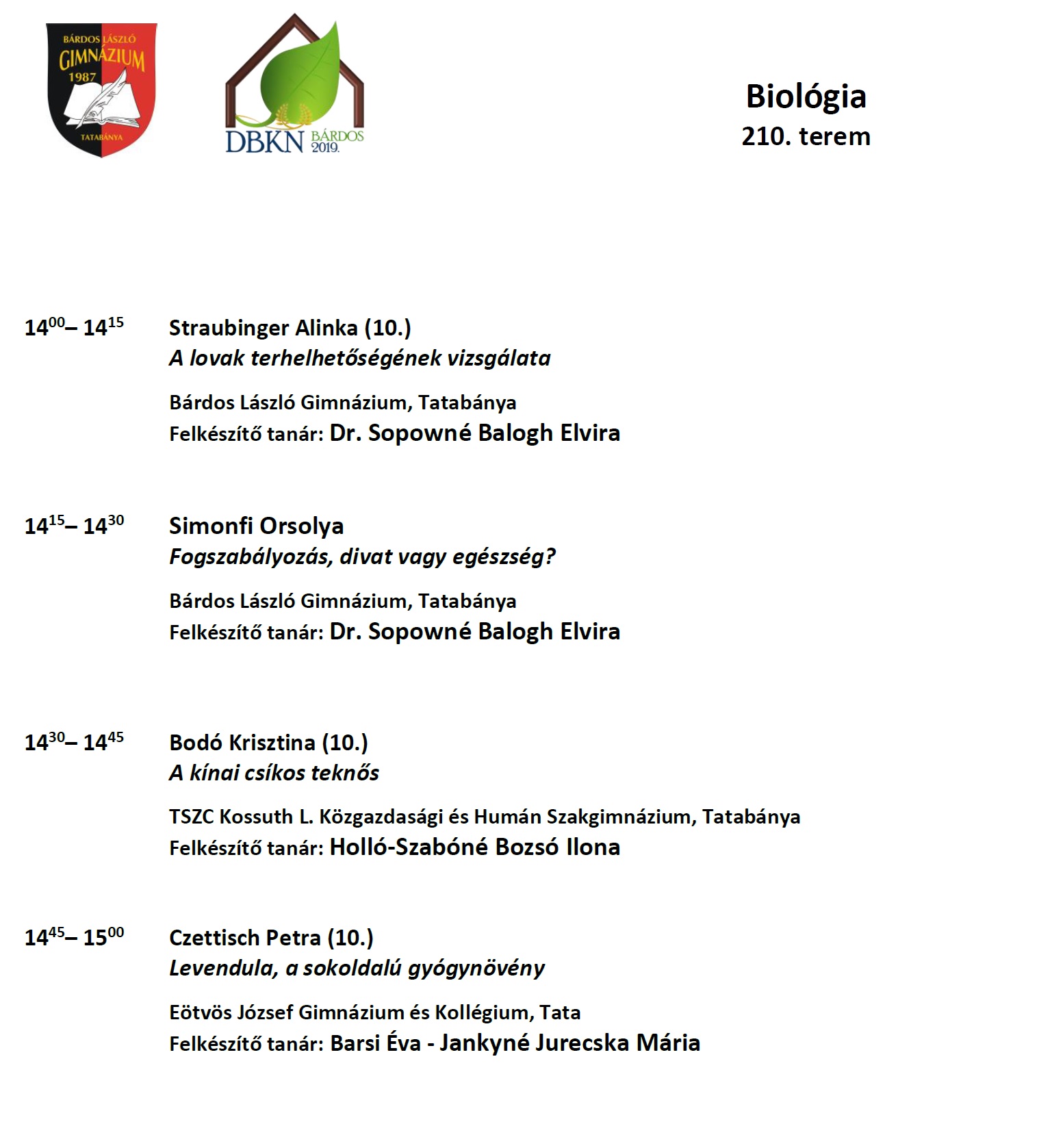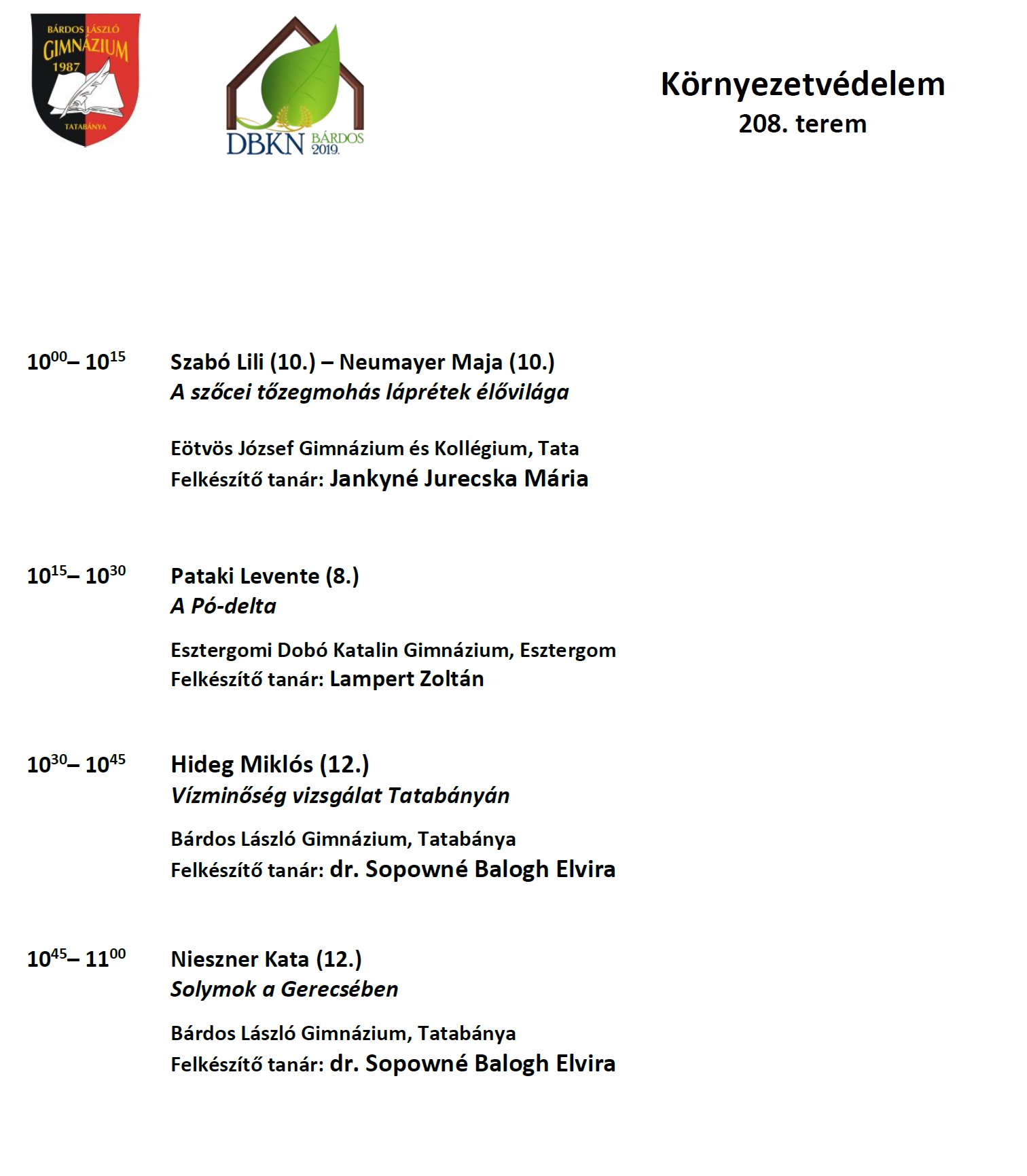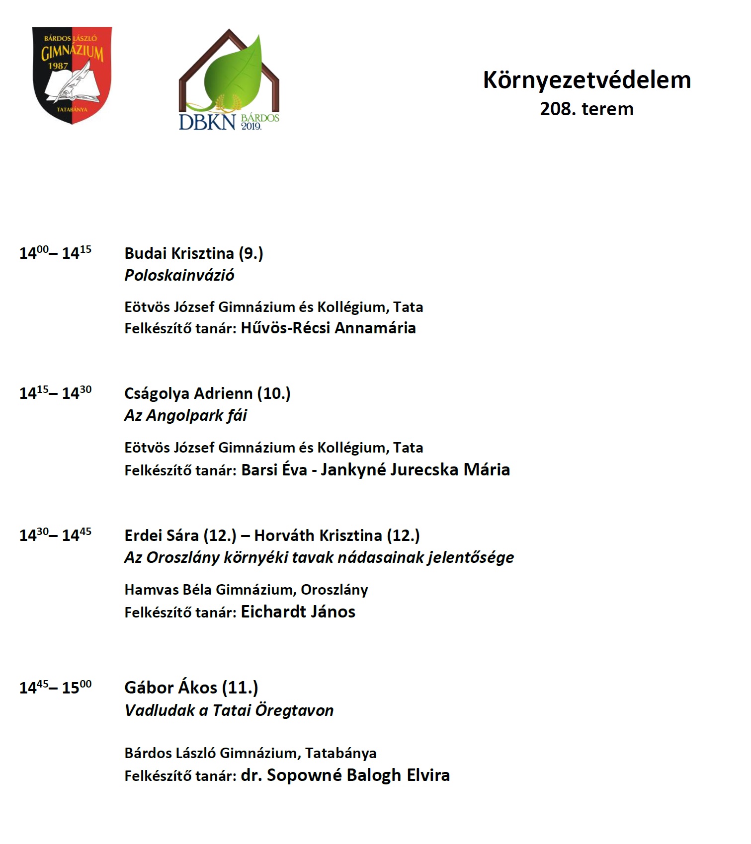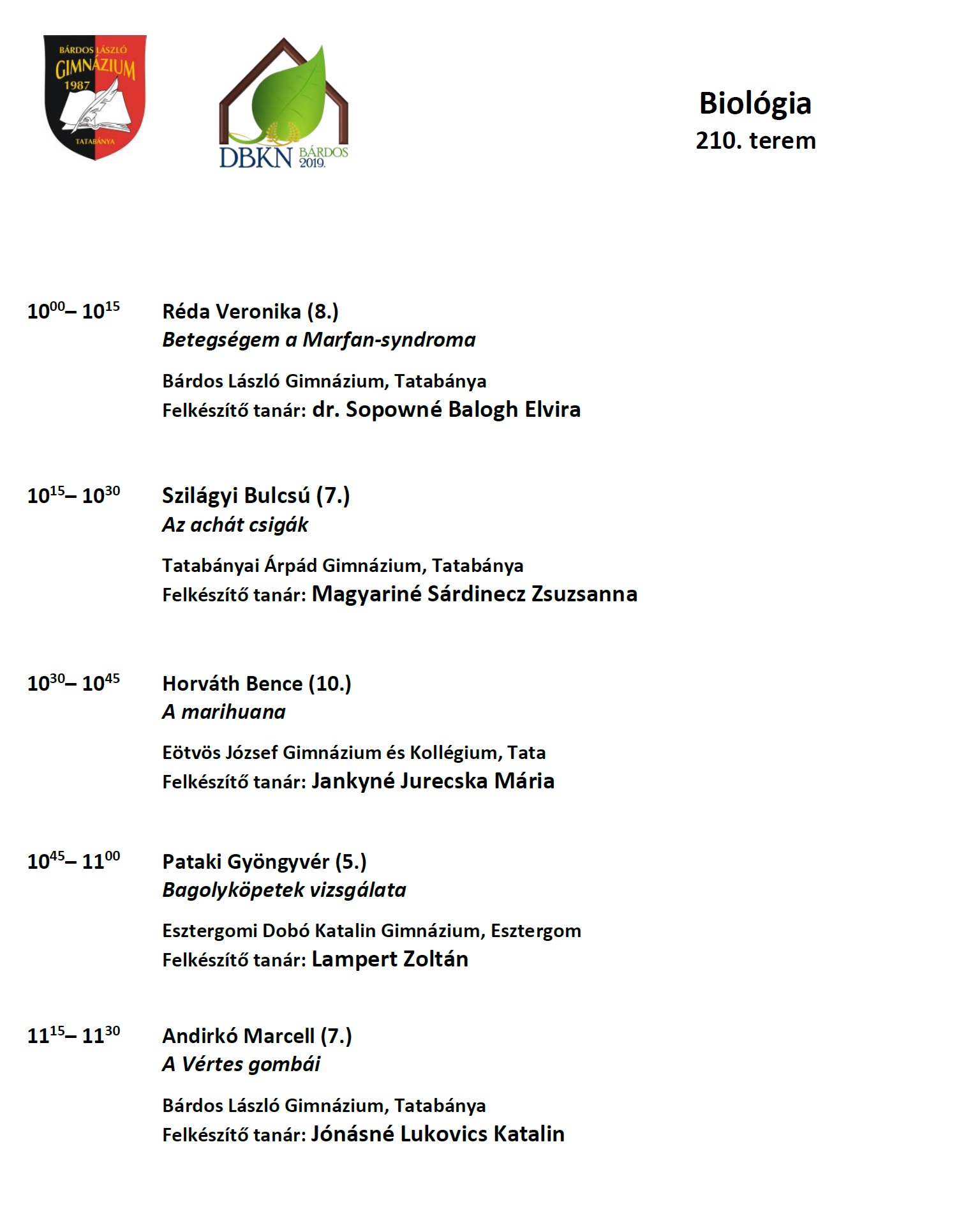Diákelőadások szekciónkét 2019